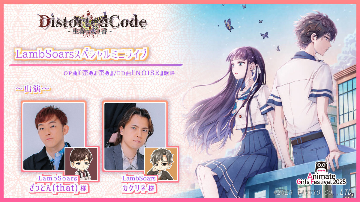 | |  DistortedCode -生者の残り香- イベントオリジナルシナリオを生アフレコ! 皆様にご参加頂く企画も予定しております♪ |