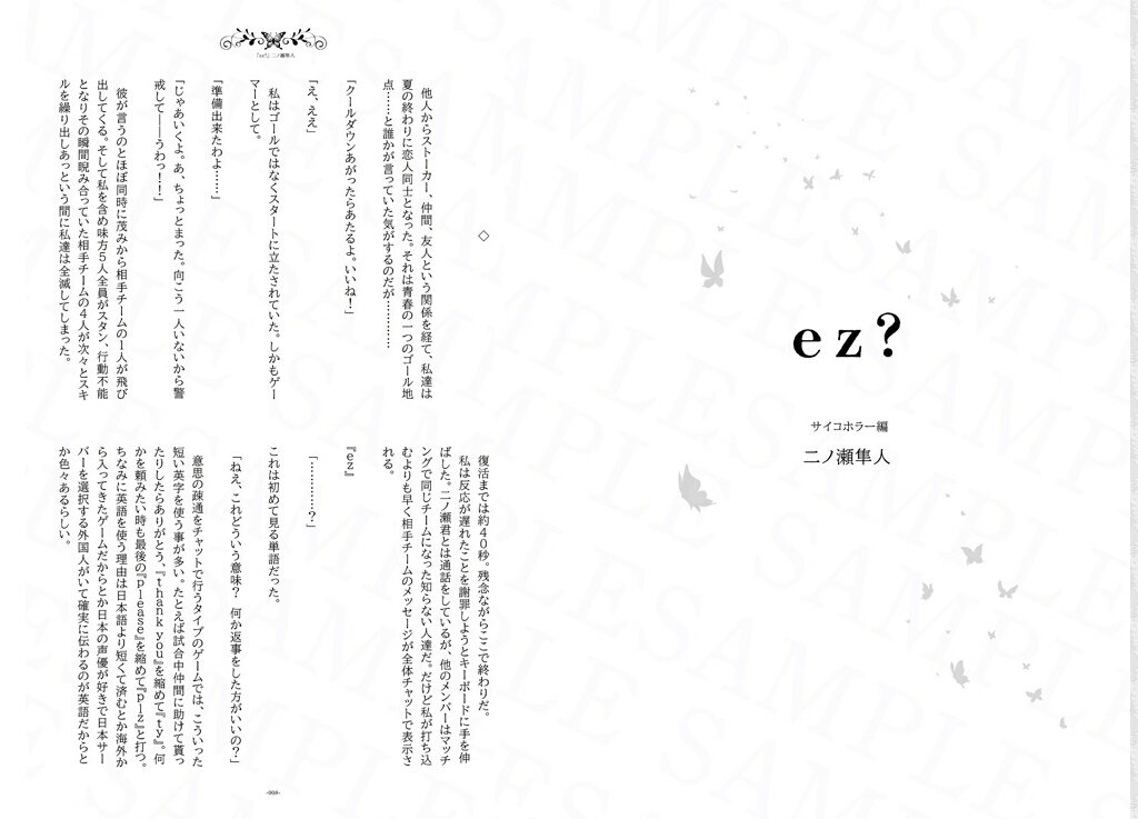 ※もう少しだけこの世界に浸りたいあなたへ、 生に向かって歩き出した主人公達の少し青くてほんのり甘い物語をお届けします ※全110ページ |