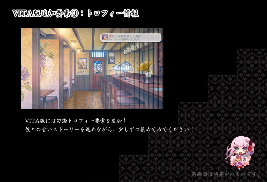 VITA版追加要素@ : 表情集 VITA版追加要素A : まる秘 VITA版追加要素B : トロフィー情報